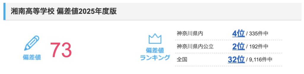 湘南高校の偏差値は73とかなり高いです!とても頭が良いんですね!